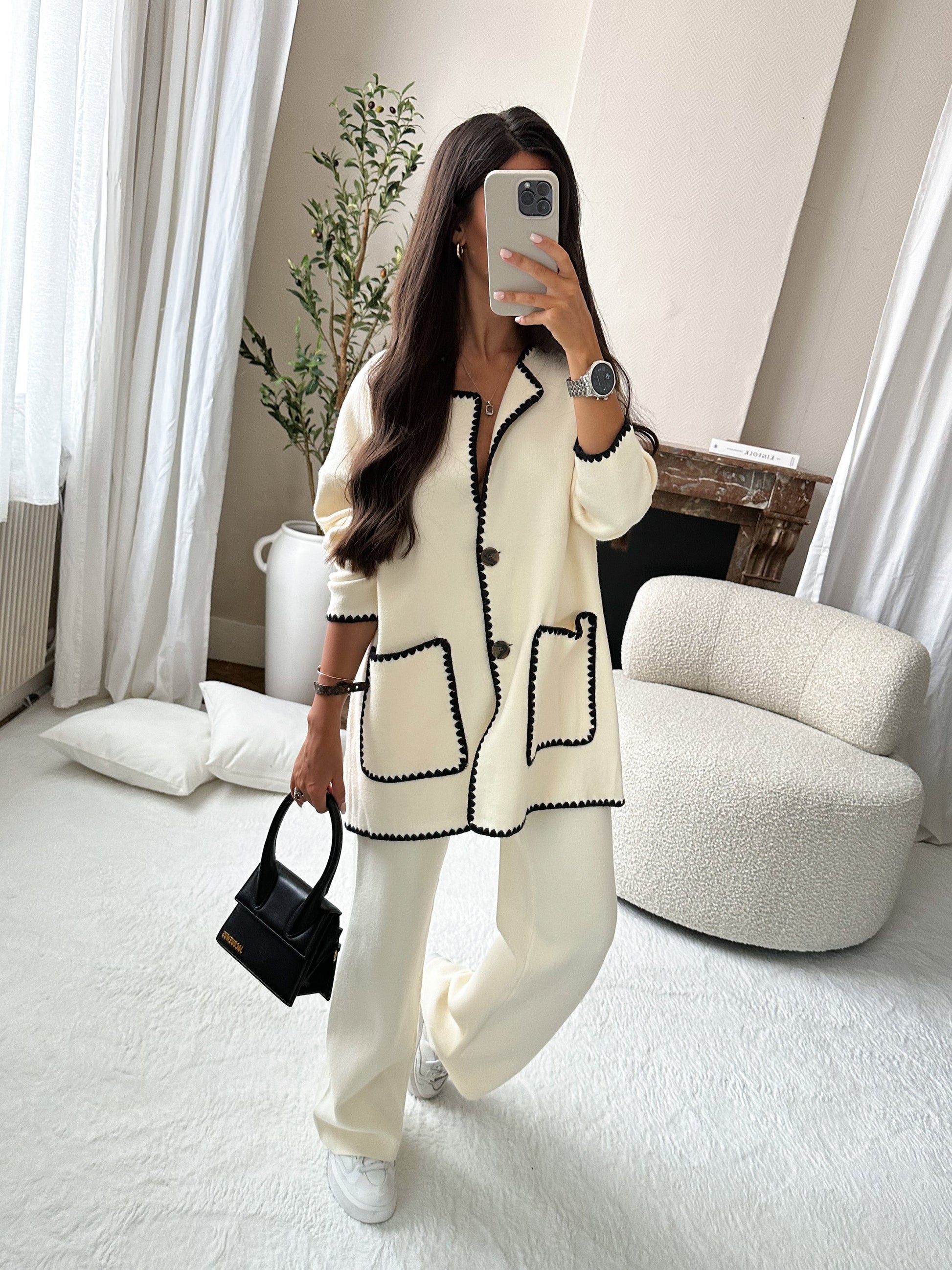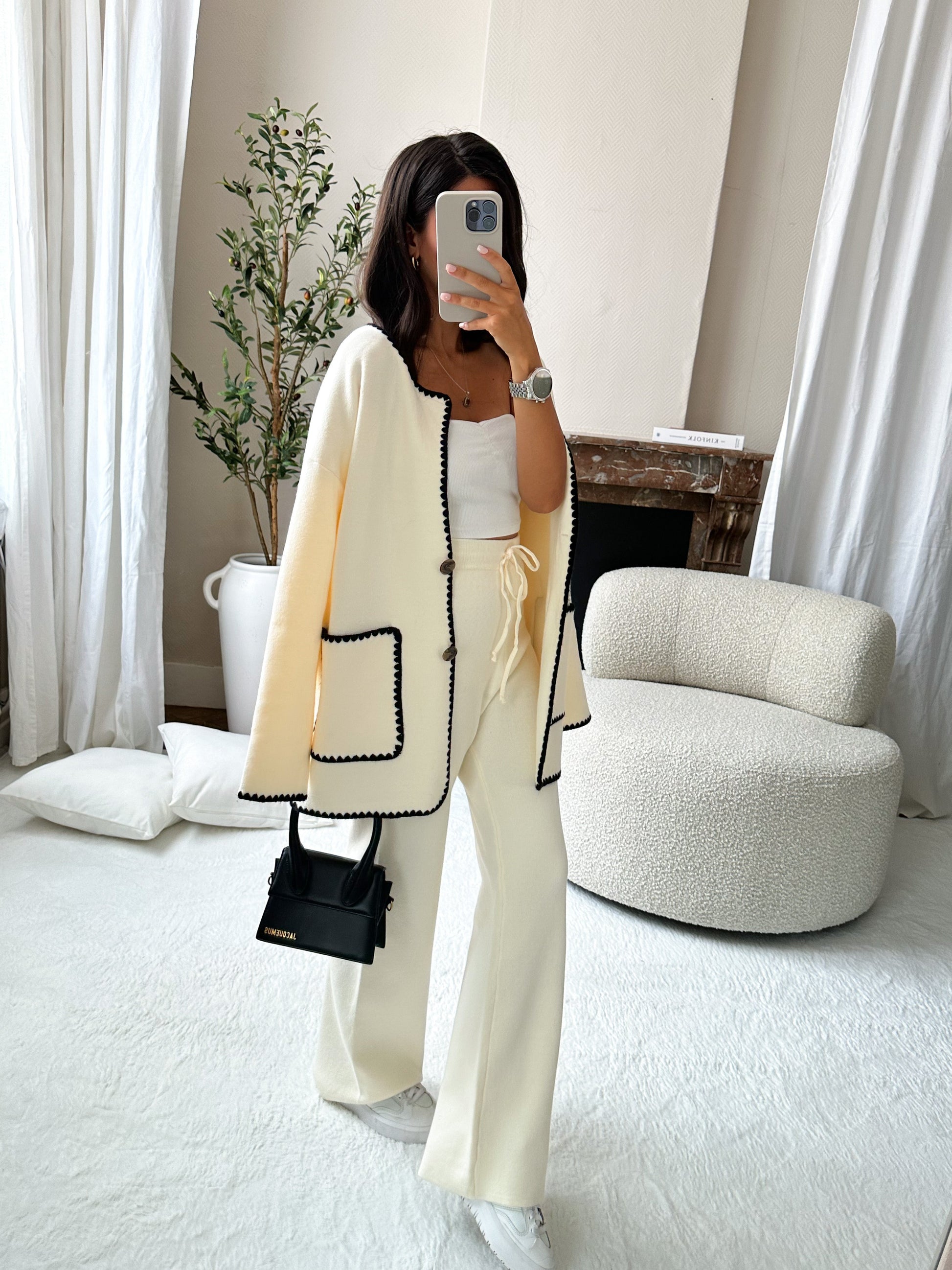 Découvrez l'essence de l'élégance et de l'authenticité dans notre ensemble Aveline. Chaque vêtement est conçu pour mettre en valeur votre beauté naturelle et renforcer votre confiance en vous.